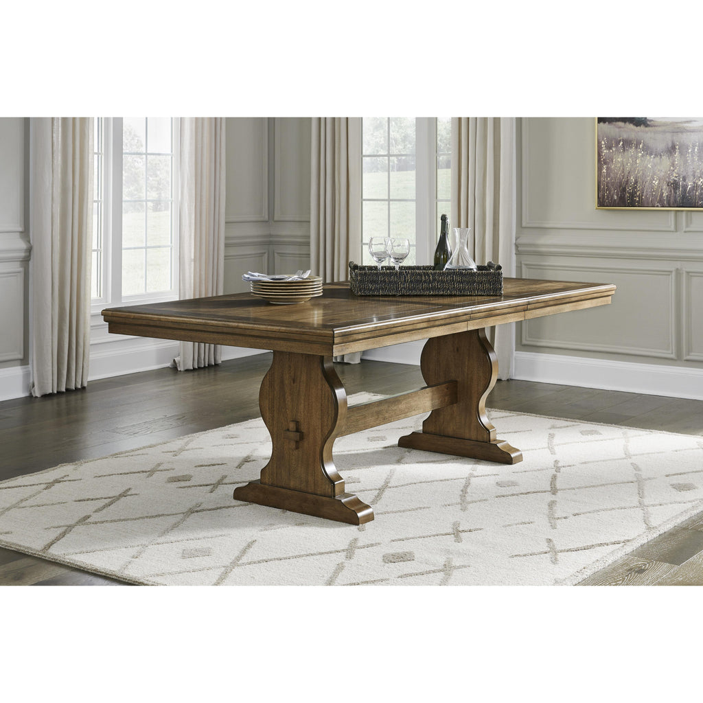• Double-pedestal trestle base with stretcher