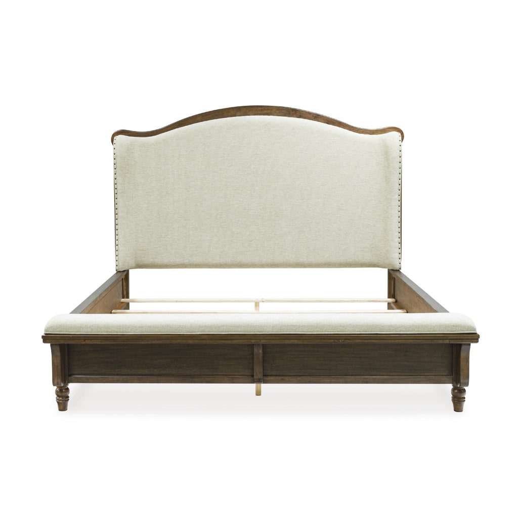 • Includes upholstered headboard, panel rails and bench footboard with slats