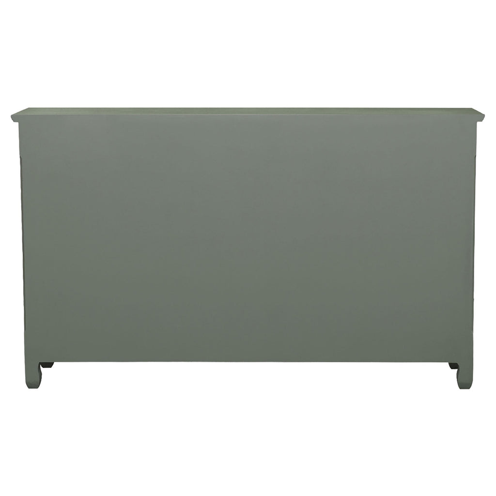 • Traditional three door accent cabinet in antique green finish offers a timeless conversation piece