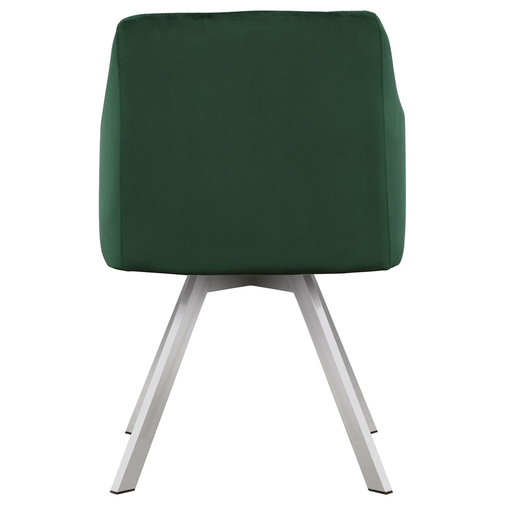 • Chic dining chair with lush green velvet upholstery and vertical tufting