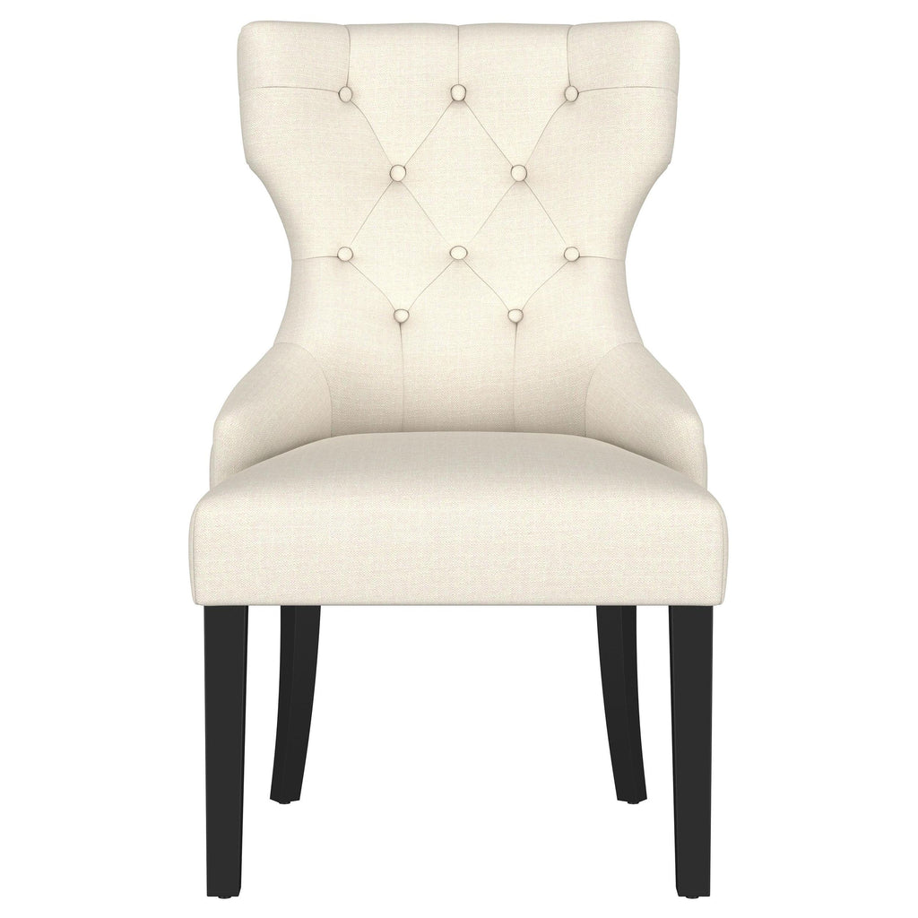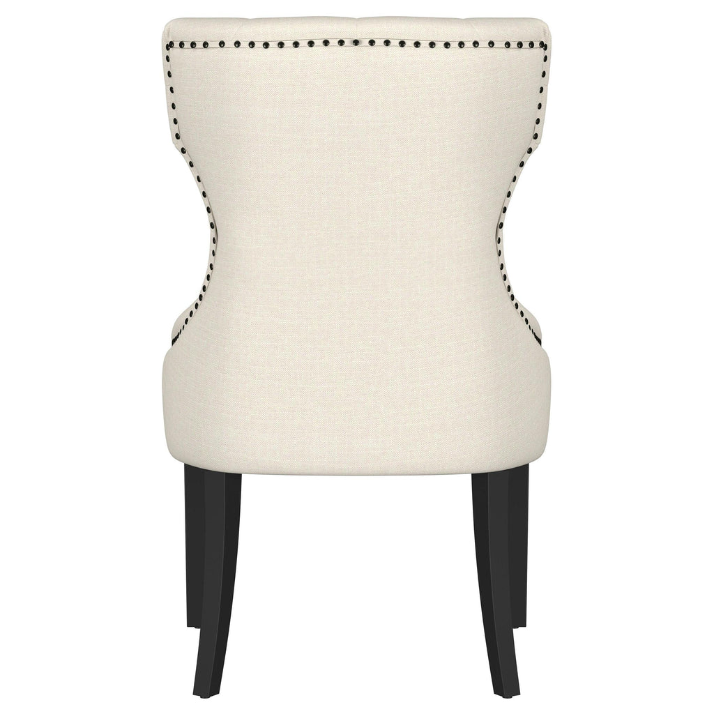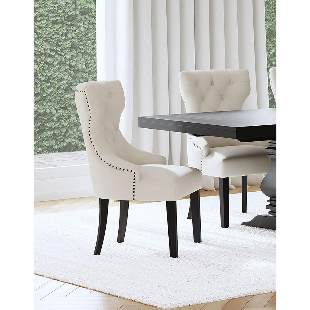 • Modern tufted dining chair creates a rich, warm ambiance with a wingback profile