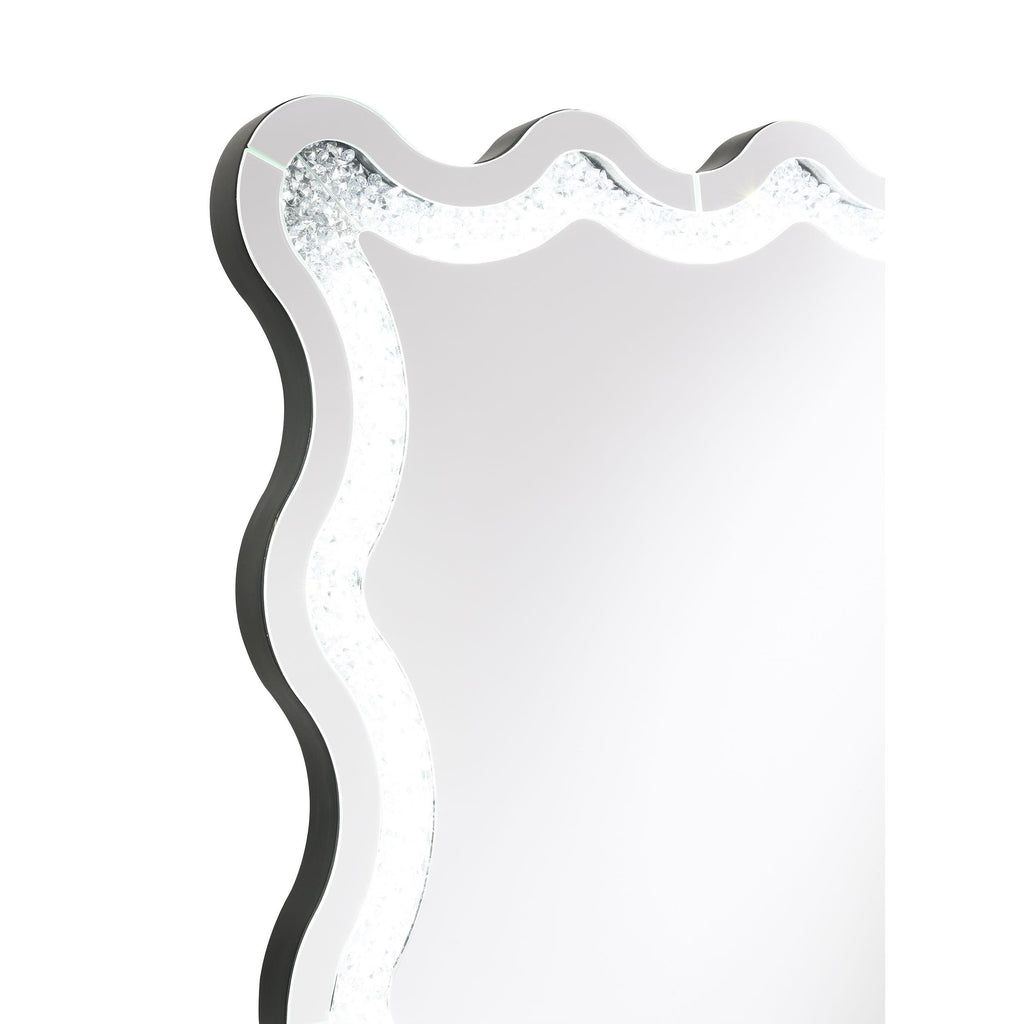 • A wavy frame silhouette adds movement and elegance to a flat, non-beveled glass mirror