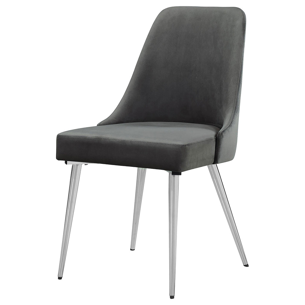 • Upholstered in loden tone fabric, chairs feature curved backs that are elegant and comfortable