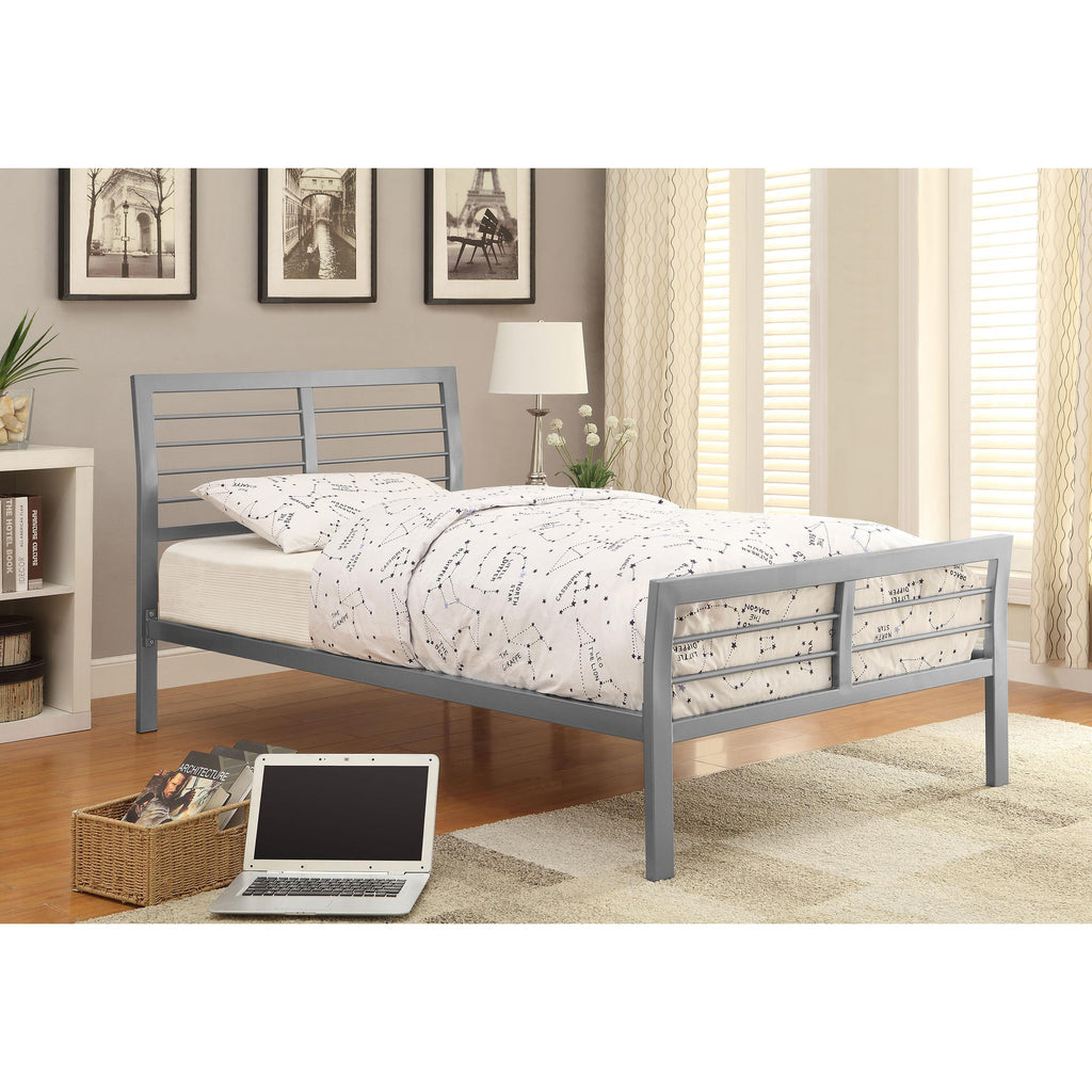 • Contemporary metal bed in silver finish
