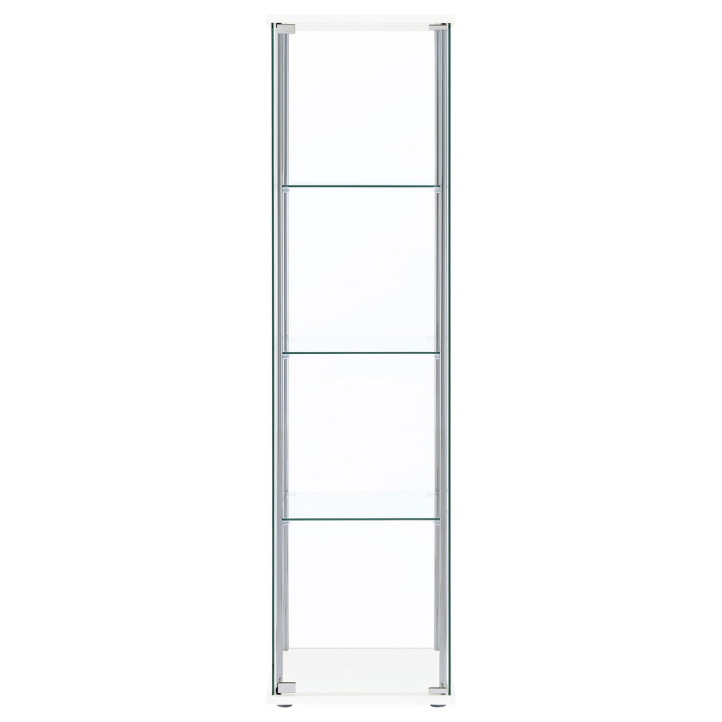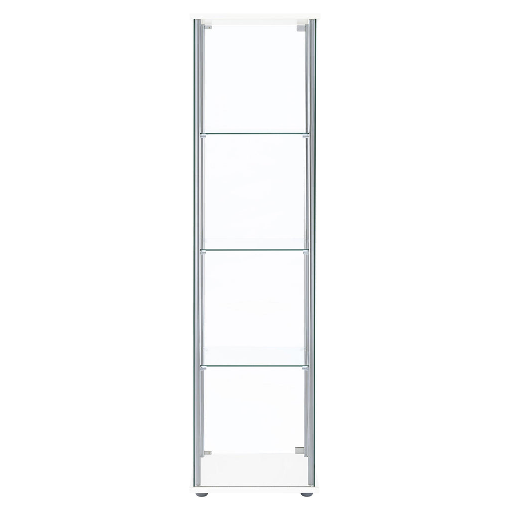 • Modern curio cabinet with rectangular top and base provides classic elegance