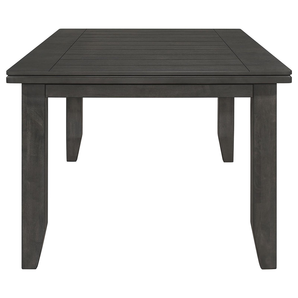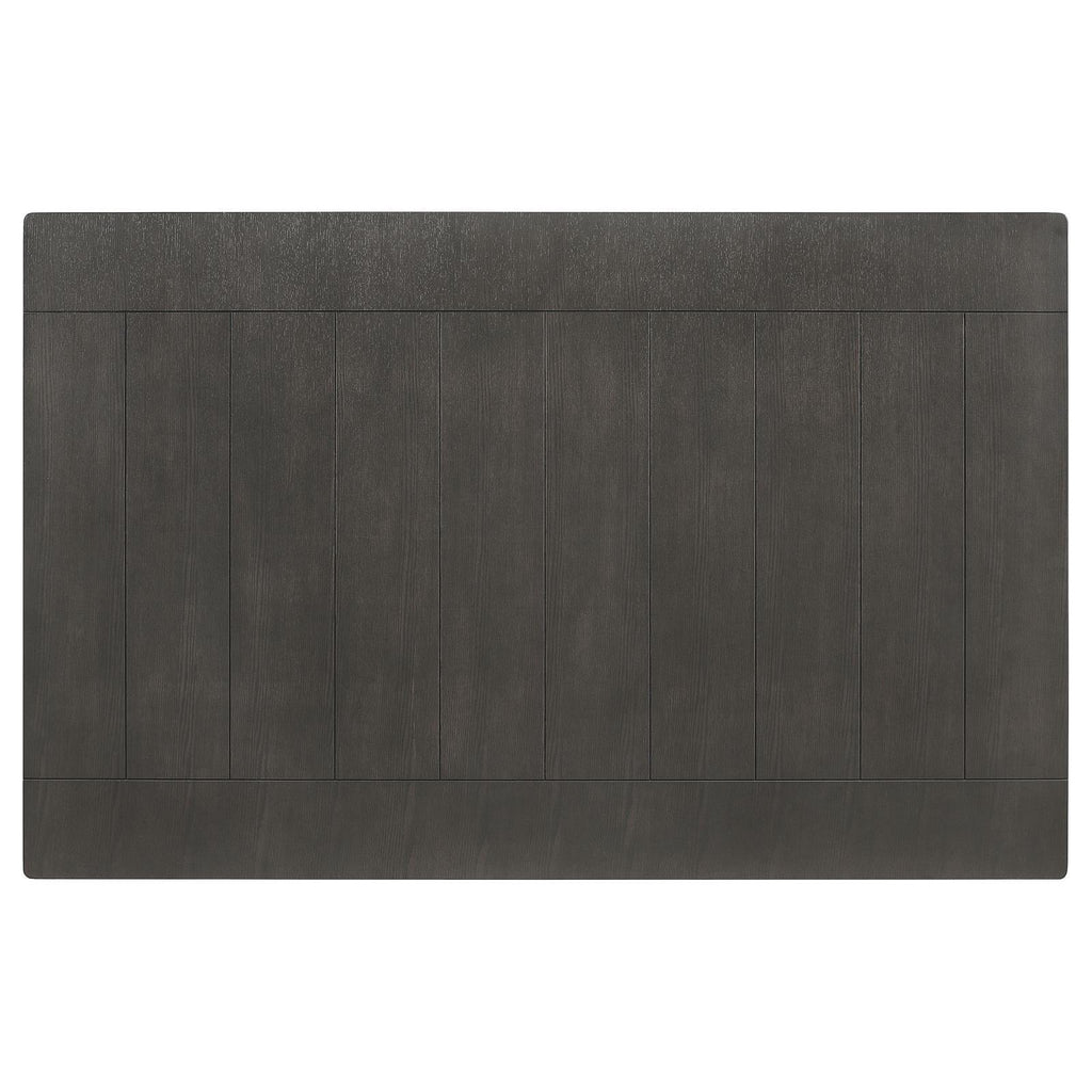 • The dark grey finish offers rustic flair to dining spaces