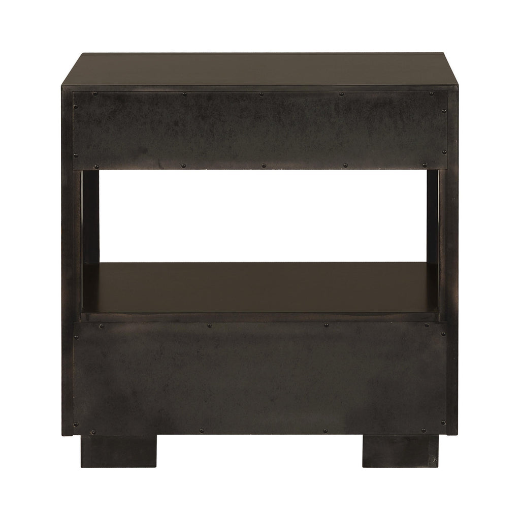 • Two-drawer nightstand in a rich smoke peppercorn finish for a modern bedroom