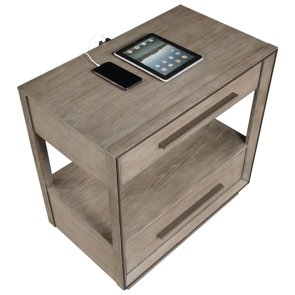 • Refined, approachable style is the hallmark of a modern two-drawer nightstand with an open shelf