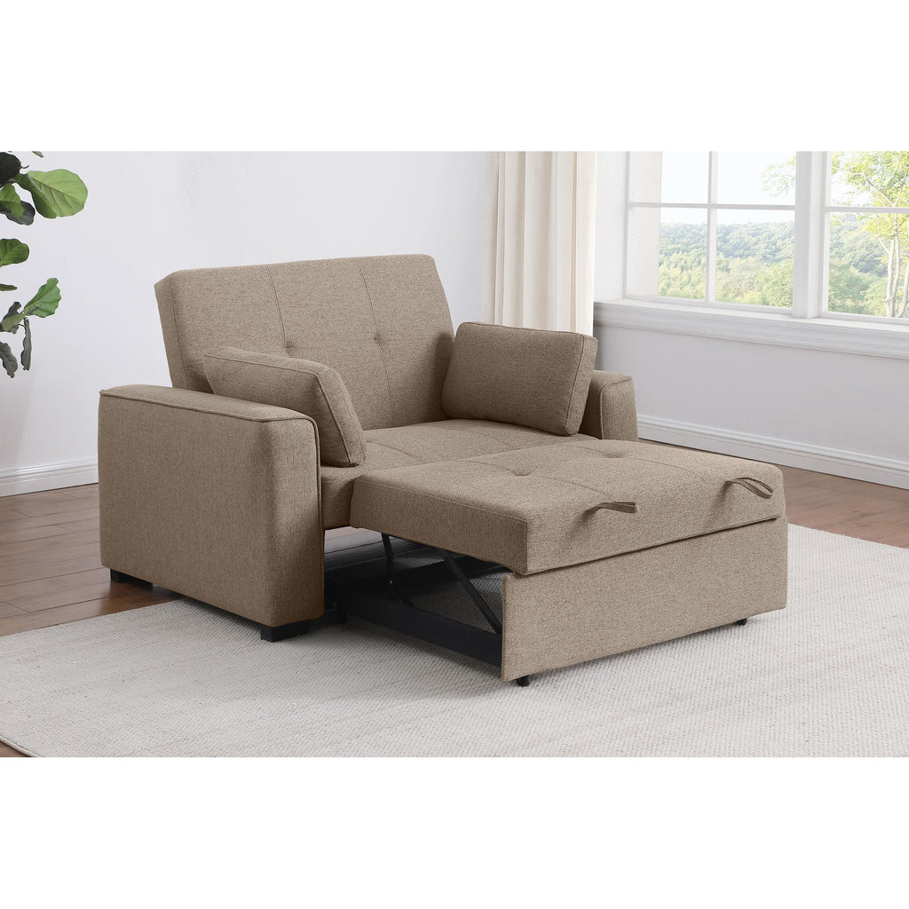 • A modern armchair that converts to a bed brings stylish multifunctionality in a living room or den