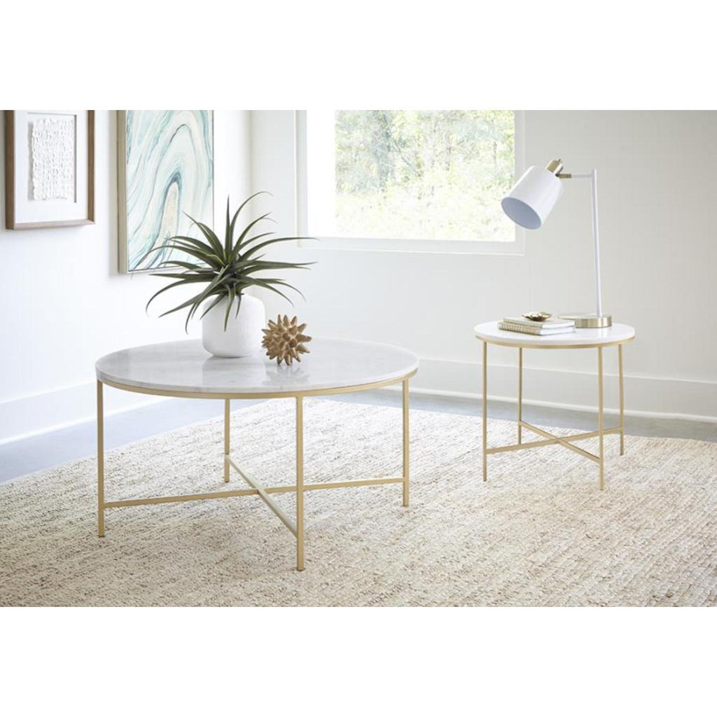 Coaster Furniture Ellison 723208 Round Marble Top Coffee Table - White and Gold