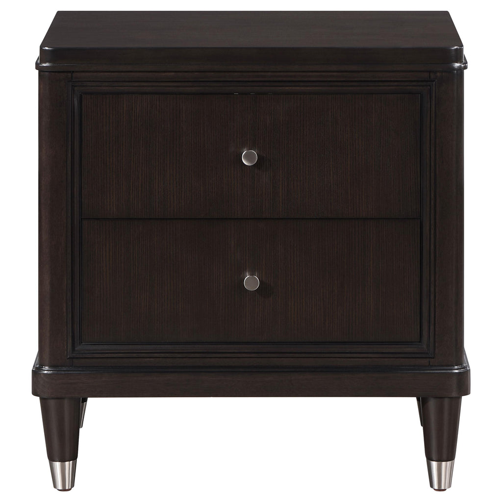 • A contemporary two-drawer nightstand offers stylish bedside storage and a refined look and feel