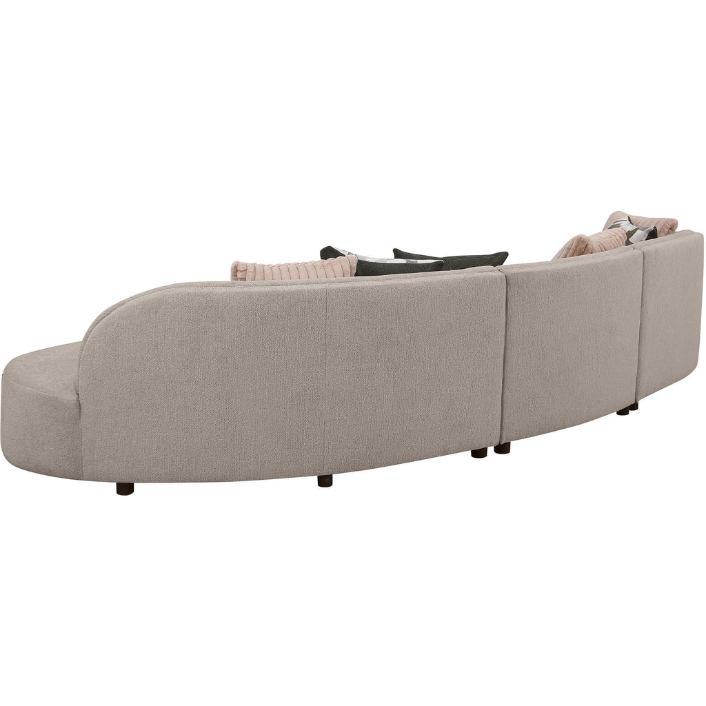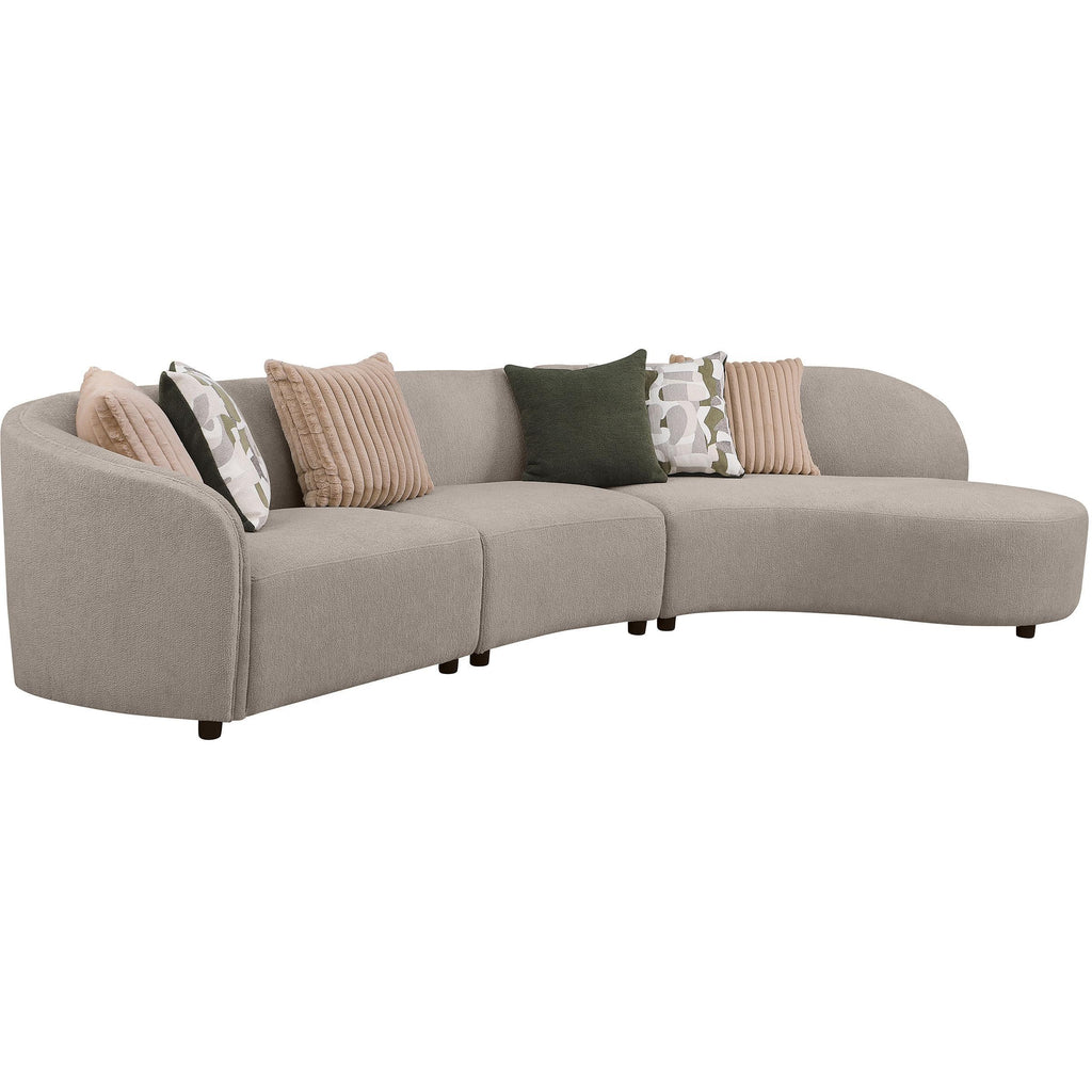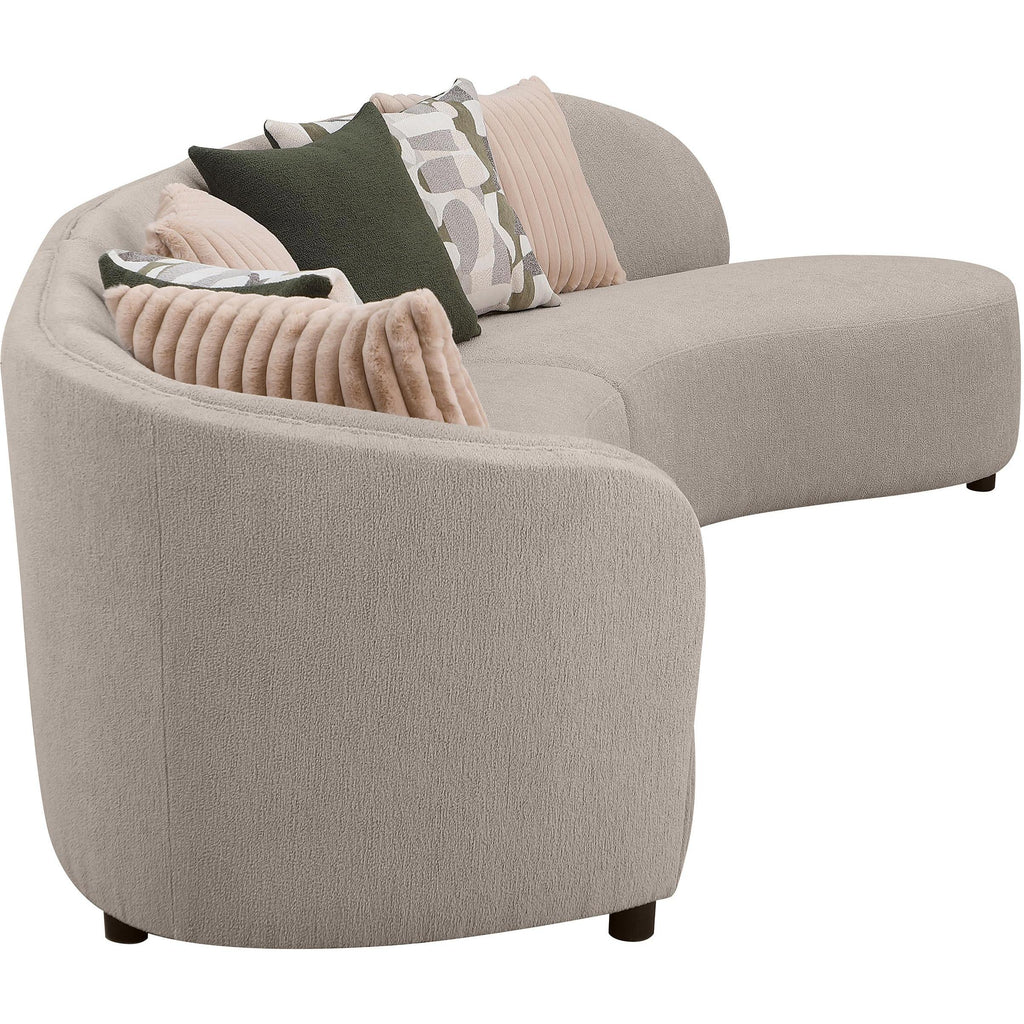 • Soft greige upholstery on a modern sectional is light and airy, with versatility to blend into decor