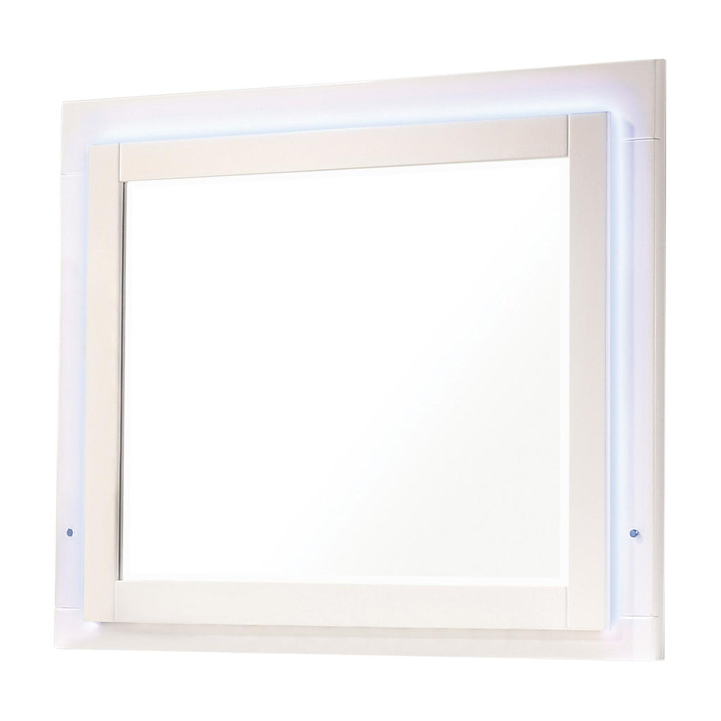 • Accented with mirrored panels on the headboard and footboard for a sophisticated touch