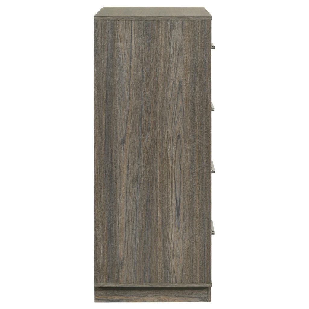 • Four-drawer chest with a contemporary two-tone melamine design
