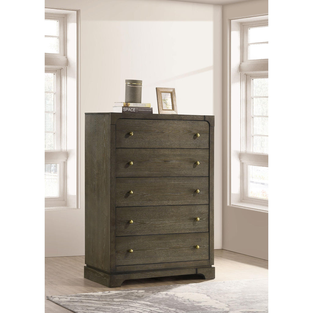 • Stylish 5-drawer chest with transitional design