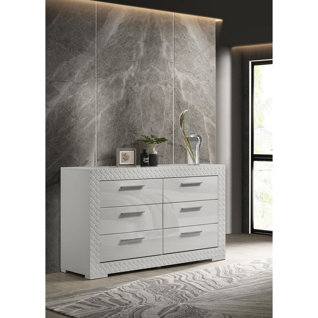 Coaster Furniture Ives 224943M 6-Drawer Dresser and Mirror - White High Gloss