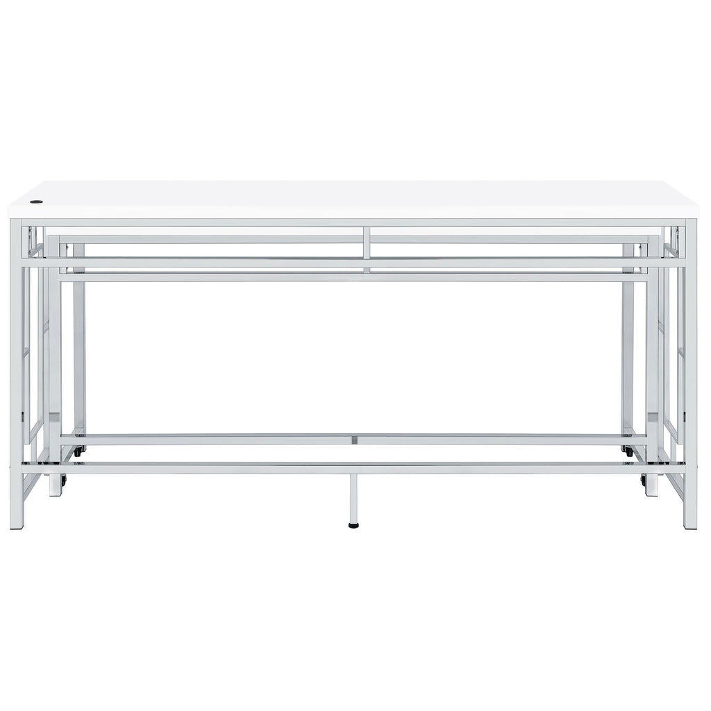 • Silver metal finish perfectly complemented with white tabletops and faux leather for a crisp look