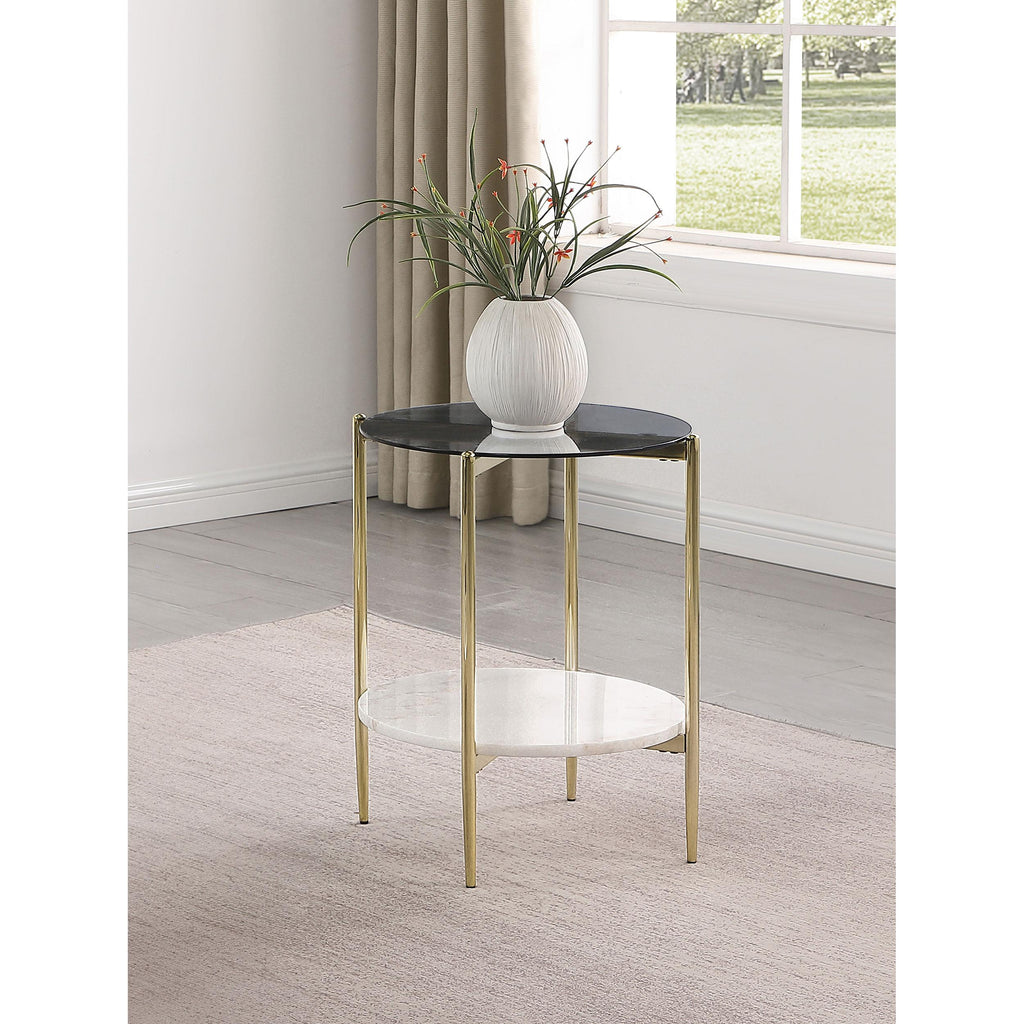 Coaster Furniture Jonelle 710338 Round Glass Top Coffee Table - White Marble Shelf Gold