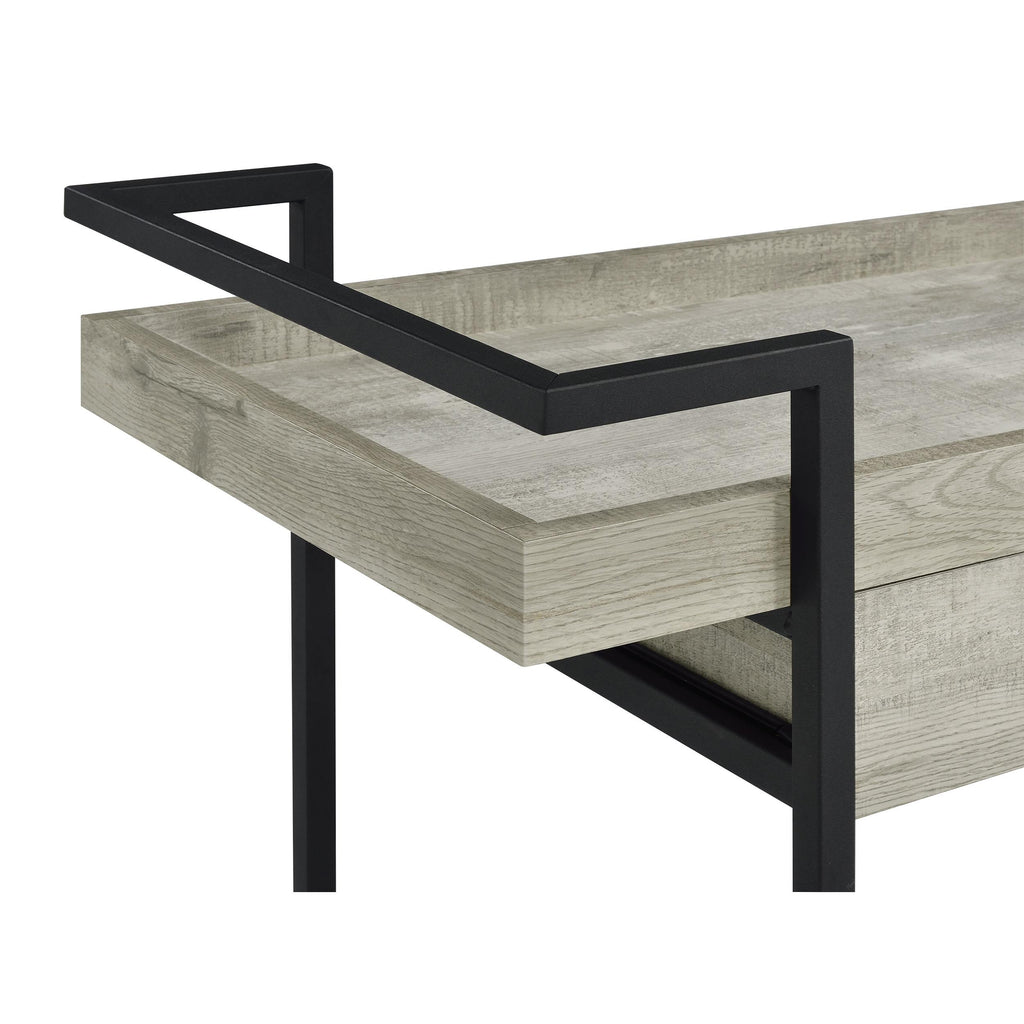 • Casual gray wood grain finish accents the look with farmhouse inspirations