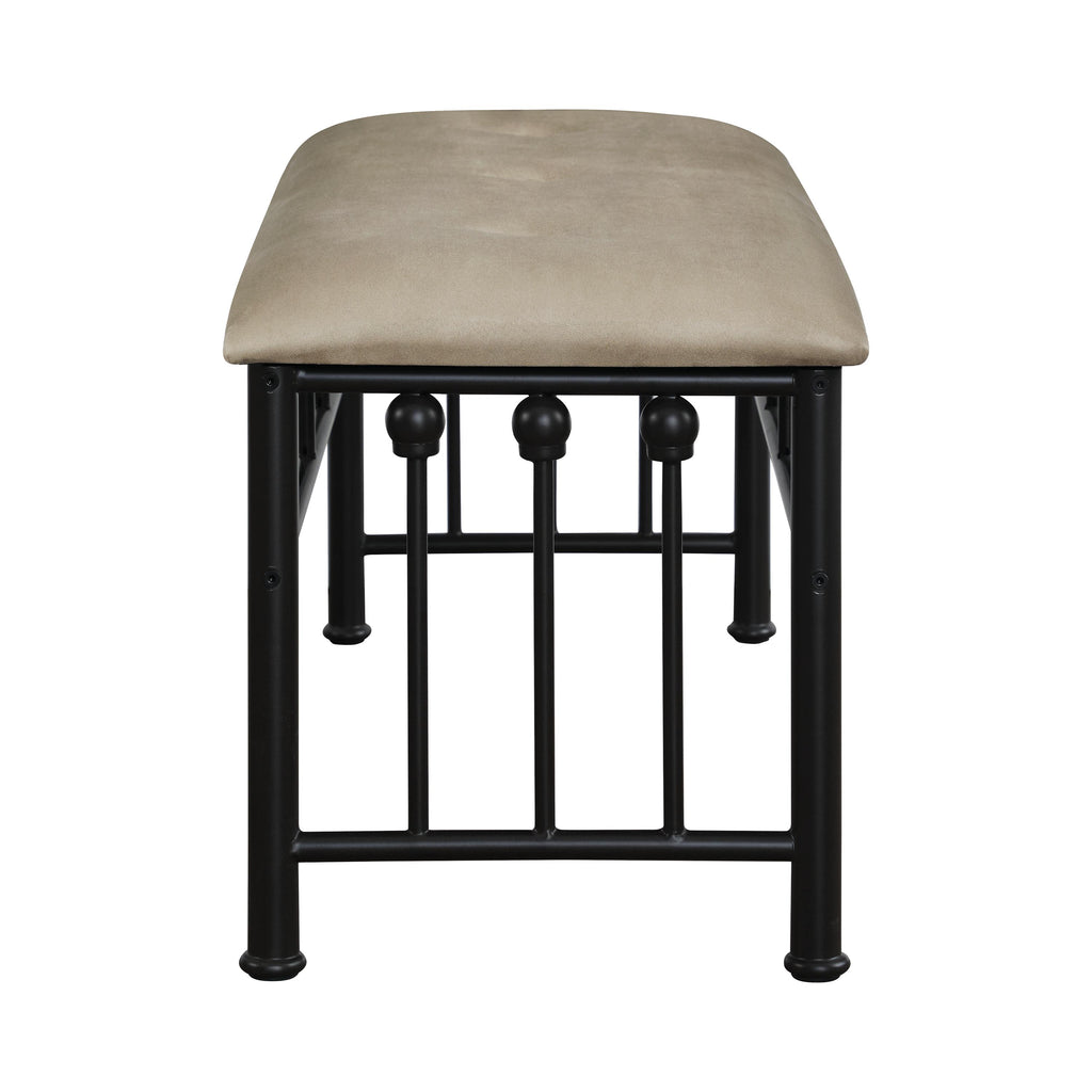 • Bench with brown microsuede fabric upholstered cushion