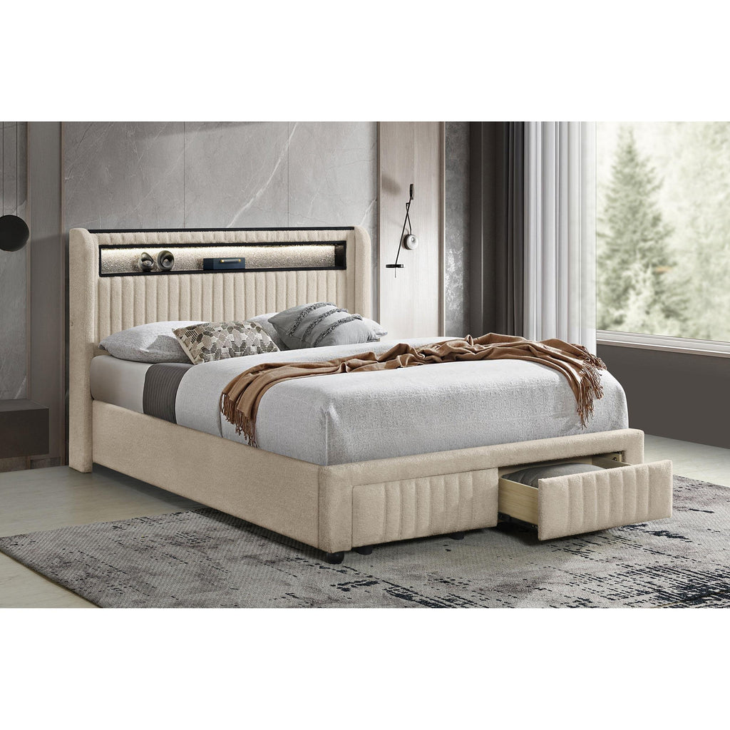 Coaster Furniture Madison 460550T Upholstered LED Twin Storage Platform Bed - Cream