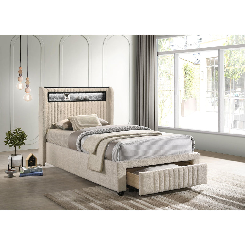 Coaster Furniture Madison 460550F Upholstered LED Full Storage Platform Bed - Cream
