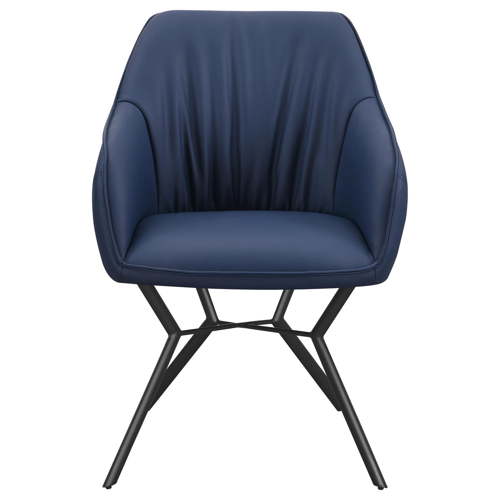 • Chair back has contrasting cover in diamond quilted brown suede-like leatherette while front has blue leatherette cover