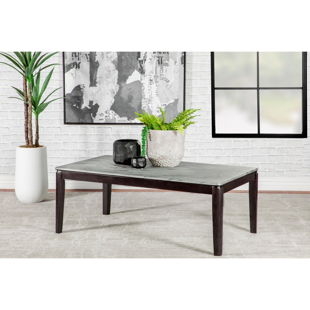 • Coffee table with a grey faux marble high-pressure laminate top for a sleek, modern design