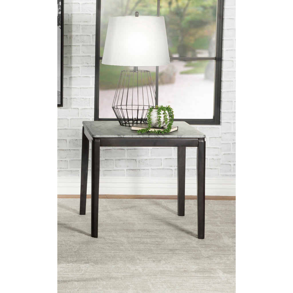 • End table with a grey faux marble high-pressure laminate top for a refined and modern appearance