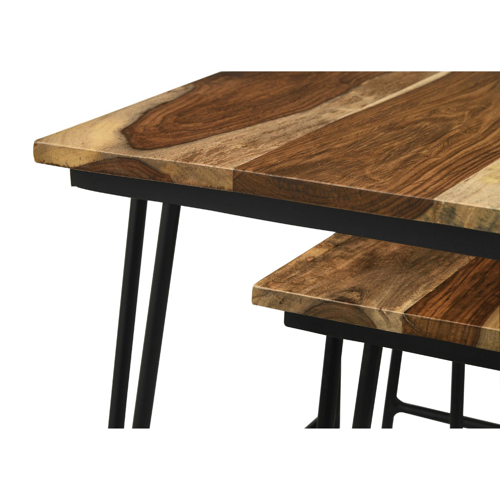 • One of a kind natural Sheesham wood and hairpin legs make these nesting tables the focal point of your room