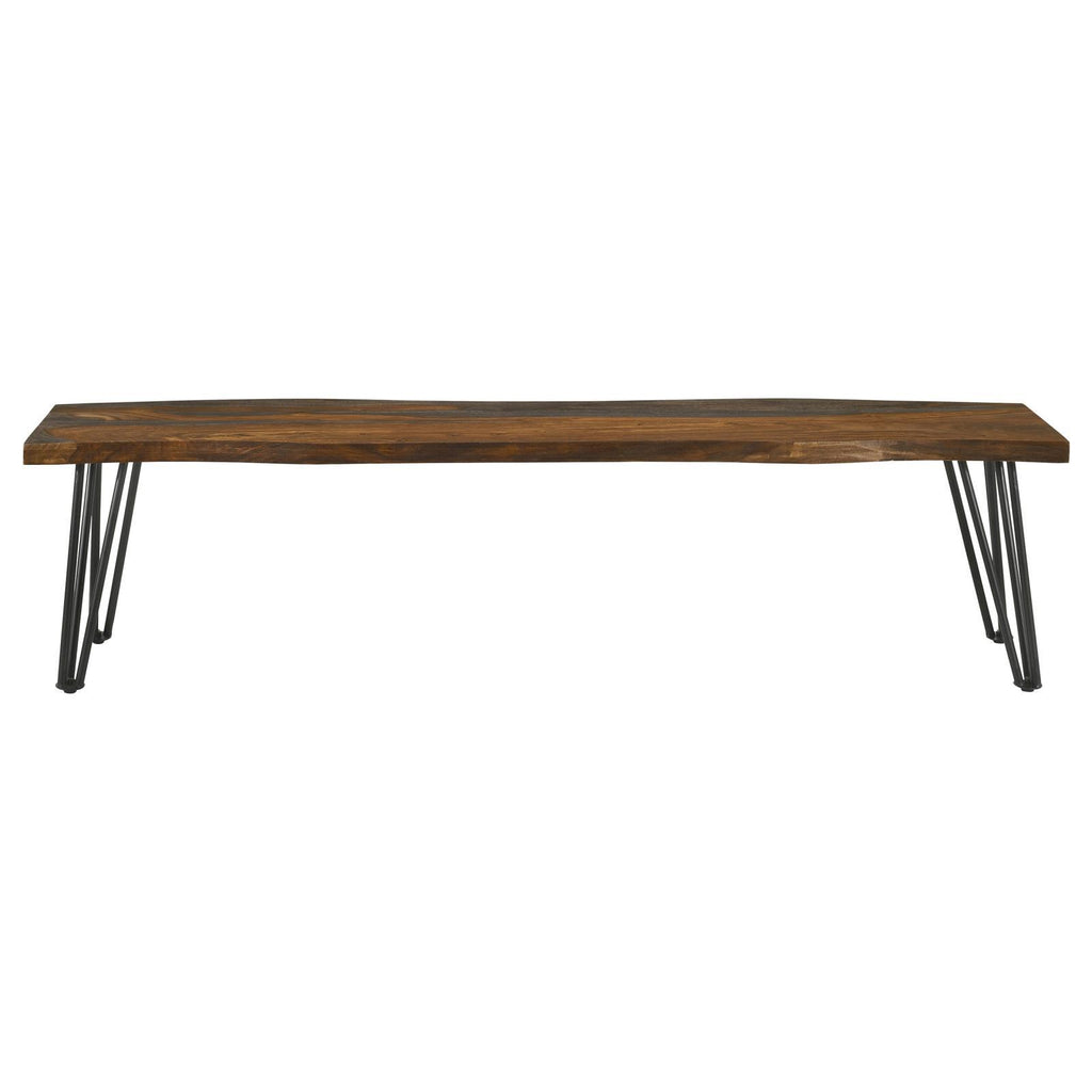 • Bench crafted of solid sheesham wood with gunmetal finished metal legs