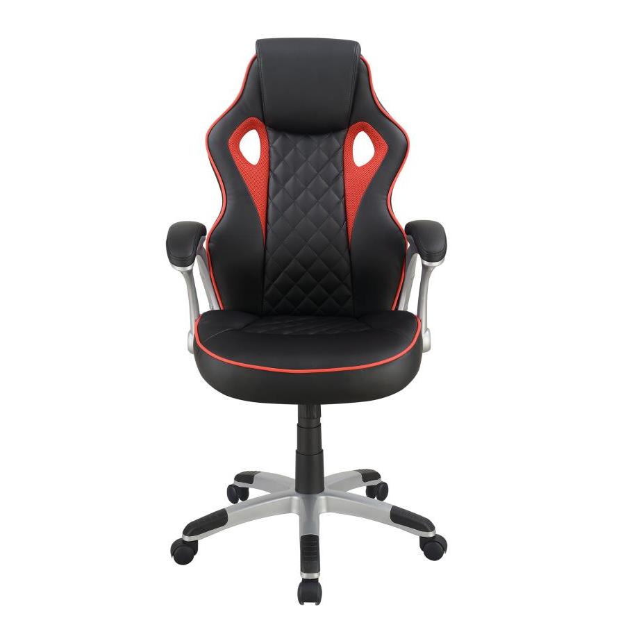 • Enjoy a vibrant look and feel with this black and red office chair, featuring a nicely padded and molded seat and seat back, plus adjustable height and padded armrests for ergonomic comfort