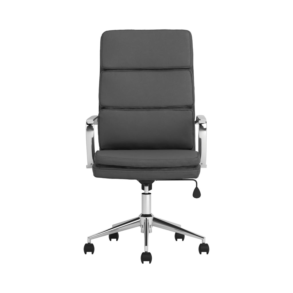 • Update your workspace with this modern office chair featuring a chrome finish on the base and contoured arms, horizontal stitching on the seat back, ergonomically contoured back for ideal support and comfort, armrests for added stability, and height-adjustability with casters for easy mobility