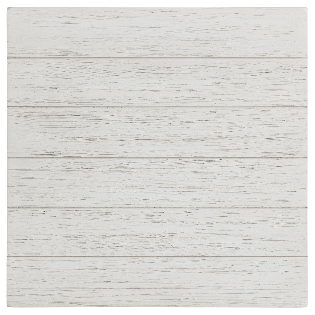 • Distressed white finish enhances its worn appeal, creating a hint of farmhouse flair in your layout