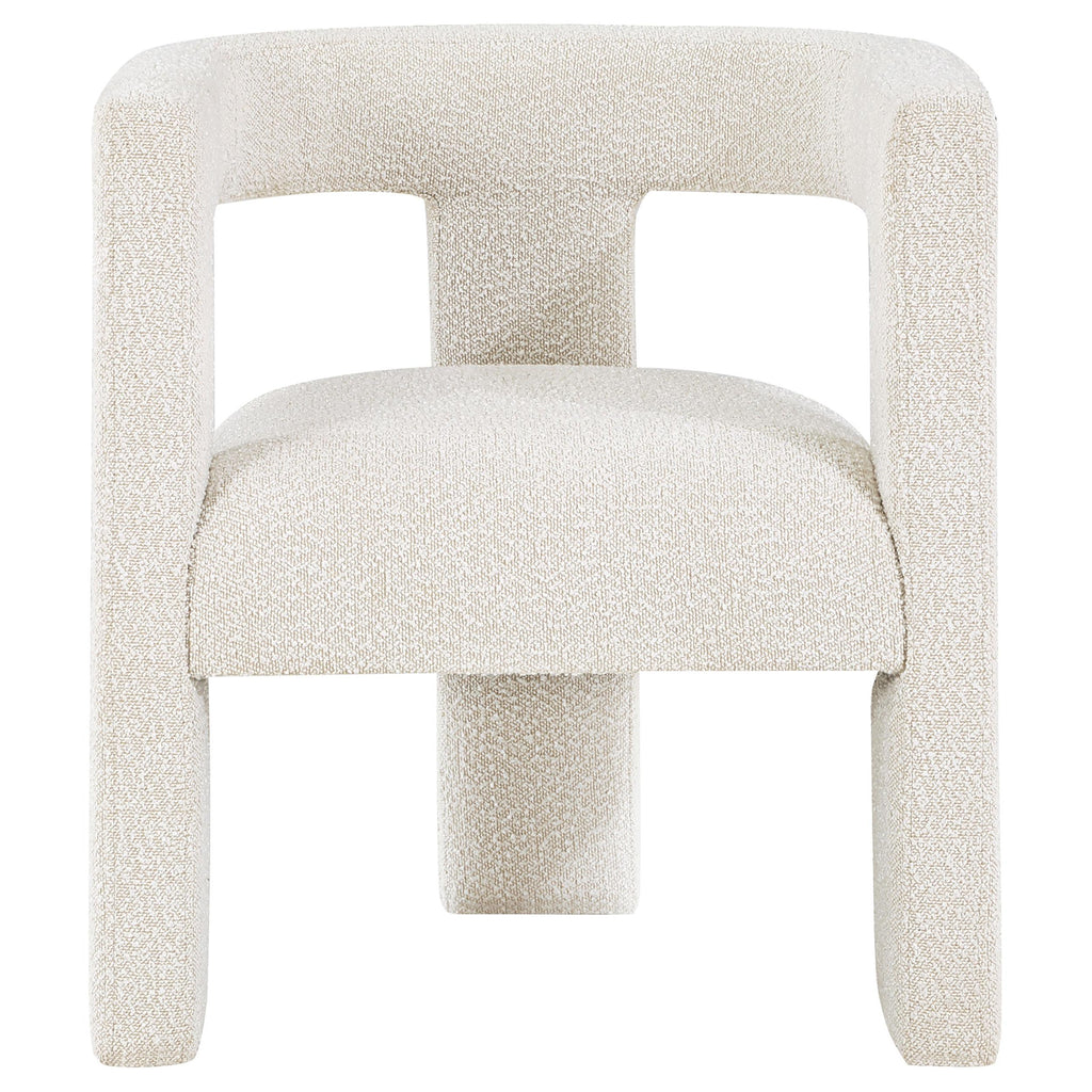 • Fully upholstered in bouclé fabric for a cohesive, luxurious look