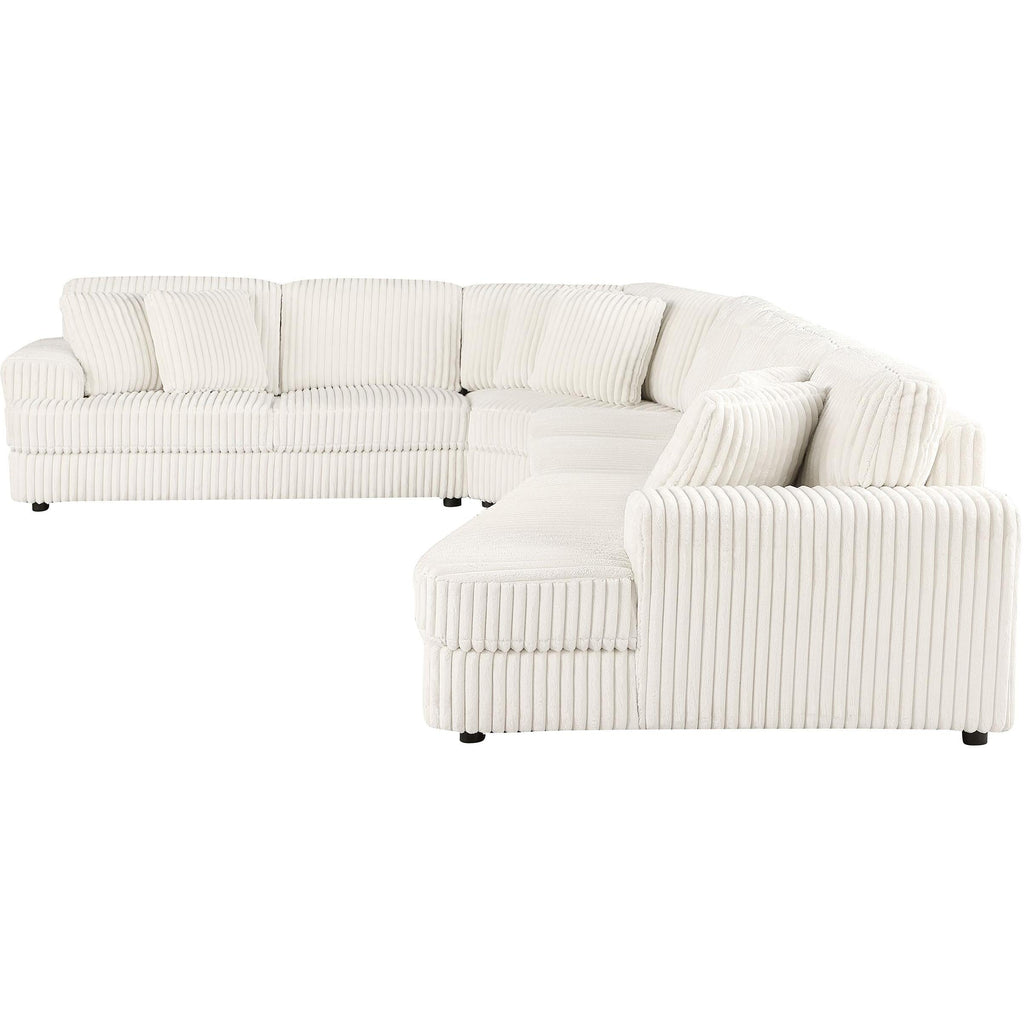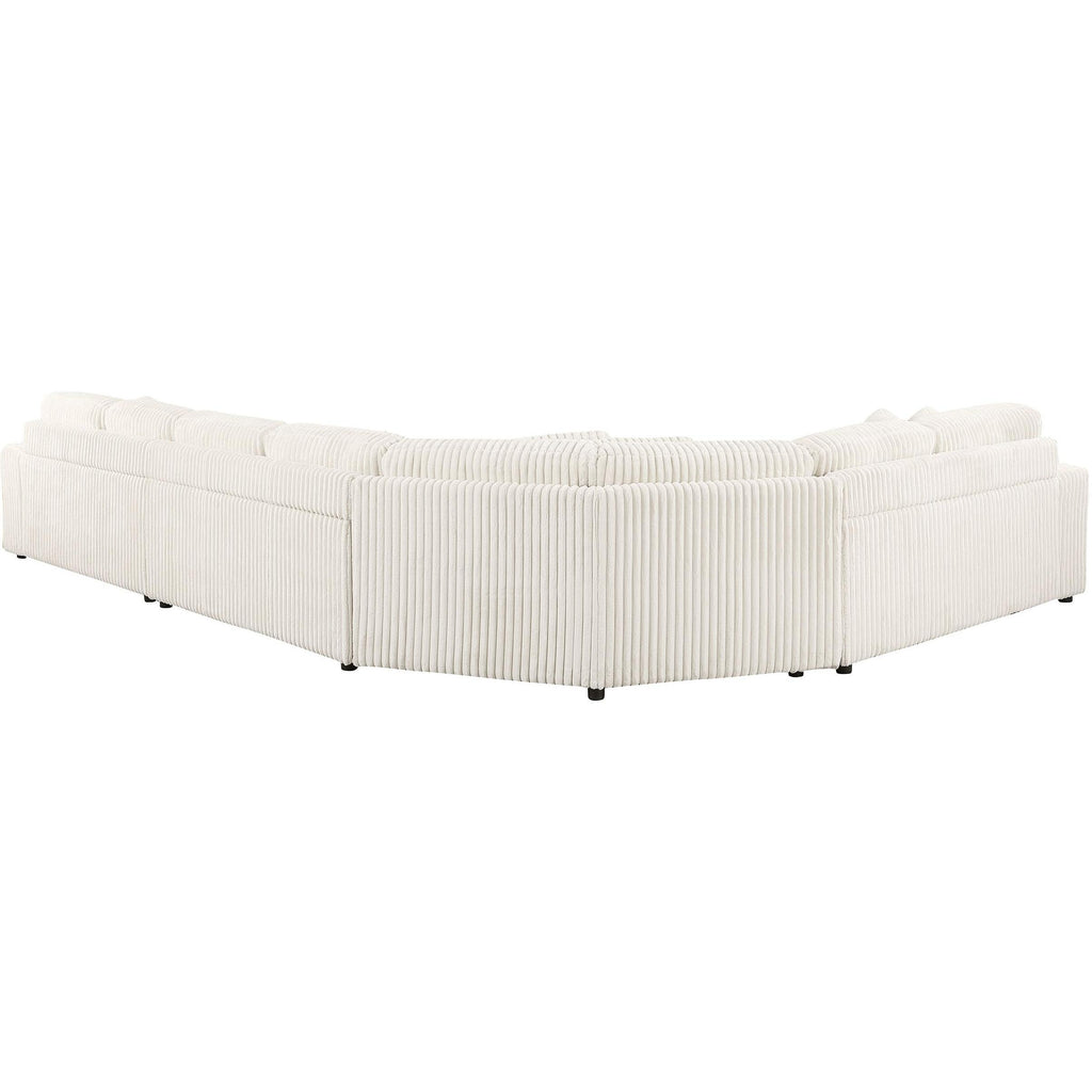 Transform your living space into a haven of comfort and elegance with our luxurious ivory wide corduroy four-piece sectional sofa... Transform your living space into a haven of comfort and elegance with our luxurious ivory wide corduroy four-piece sectional sofa set. Designed to provide ample seating for large families or entertainment gatherings, this grand-scale sofa set exudes plush, fur-like softness. Upholstered in luxurious ivory wide corduroy, it offers an exceptionally soft and inviting texture, mimicking the feel of fur for a cozy and warm seating experience. With attached seats for a tidy appearance and reversible back cushions for even wear, this sectional is perfect for any spacious living area, ensuring comfort and style for all. View more