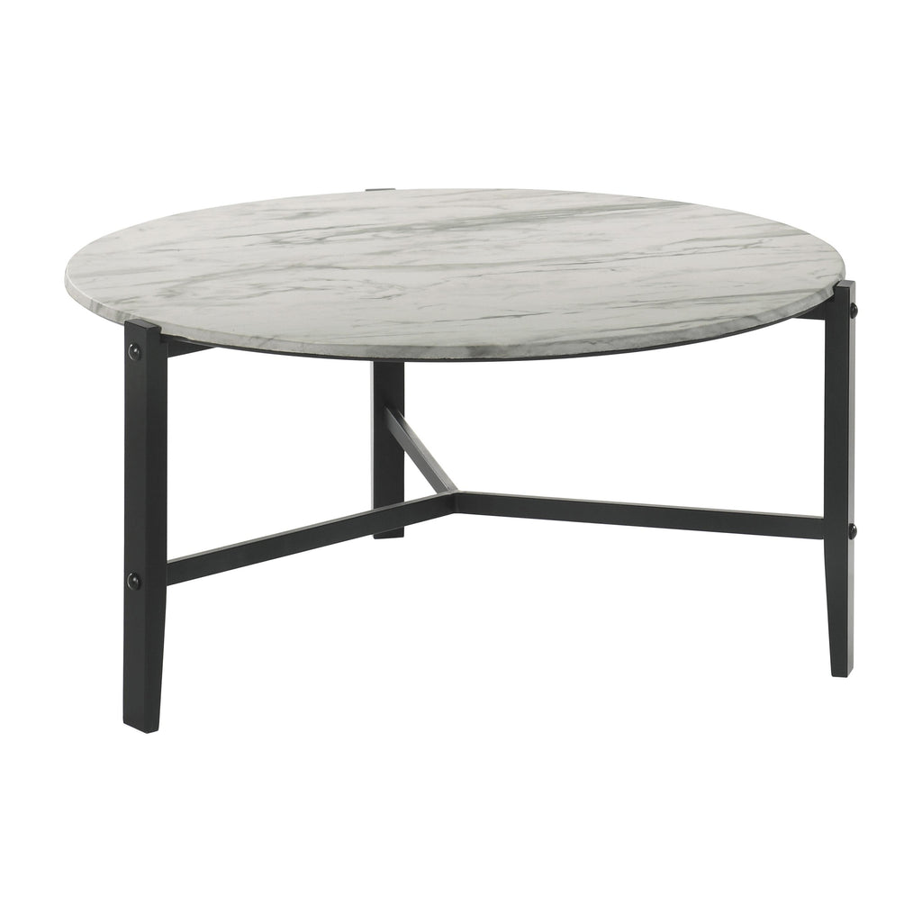 Coaster Furniture Tandi 753537 Round Faux Marble Side End Table - White and Black