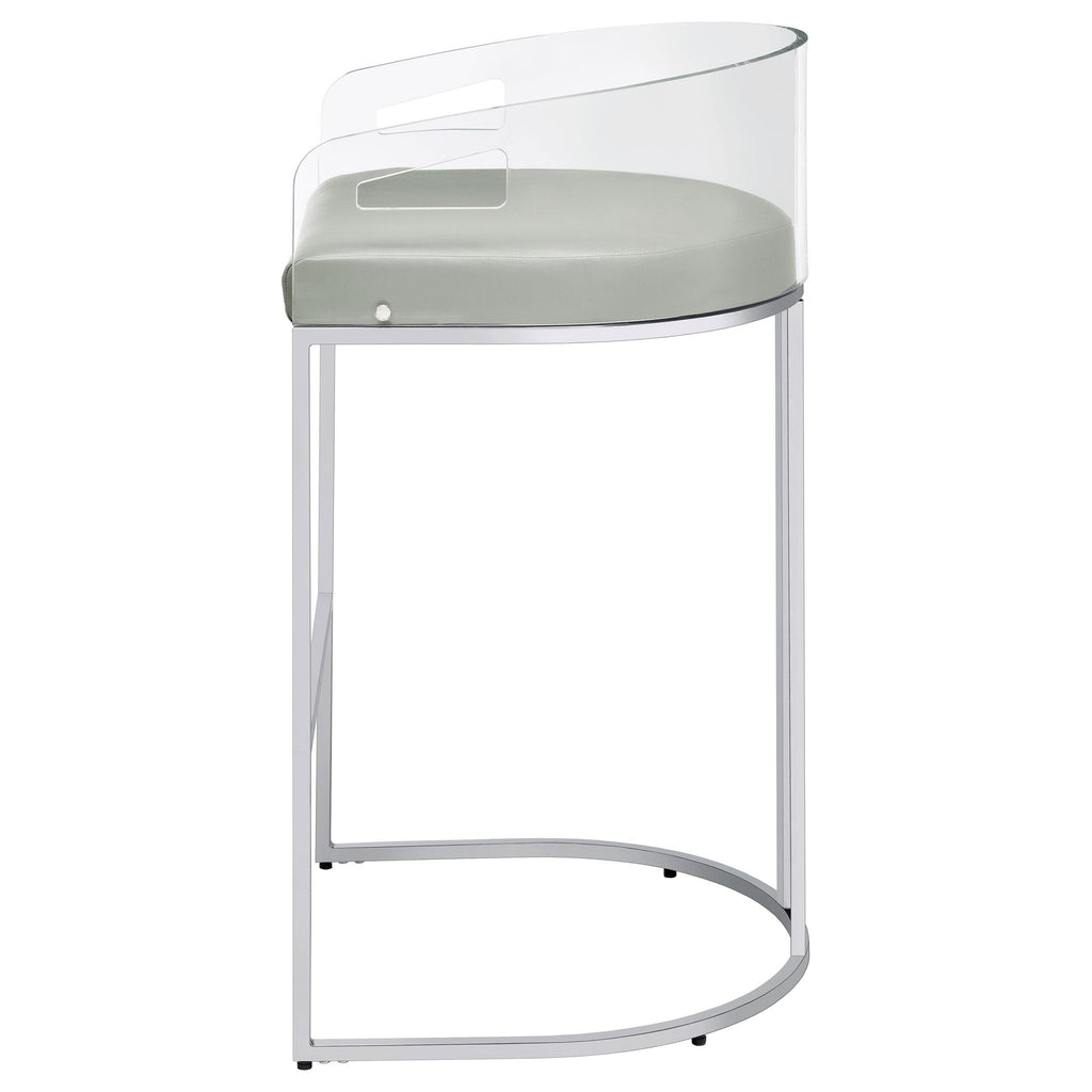 • Ultra-modern with a retro-inspired vibe, these stools feature a curved backrest in clear acrylic and leatherette cushion for comfort