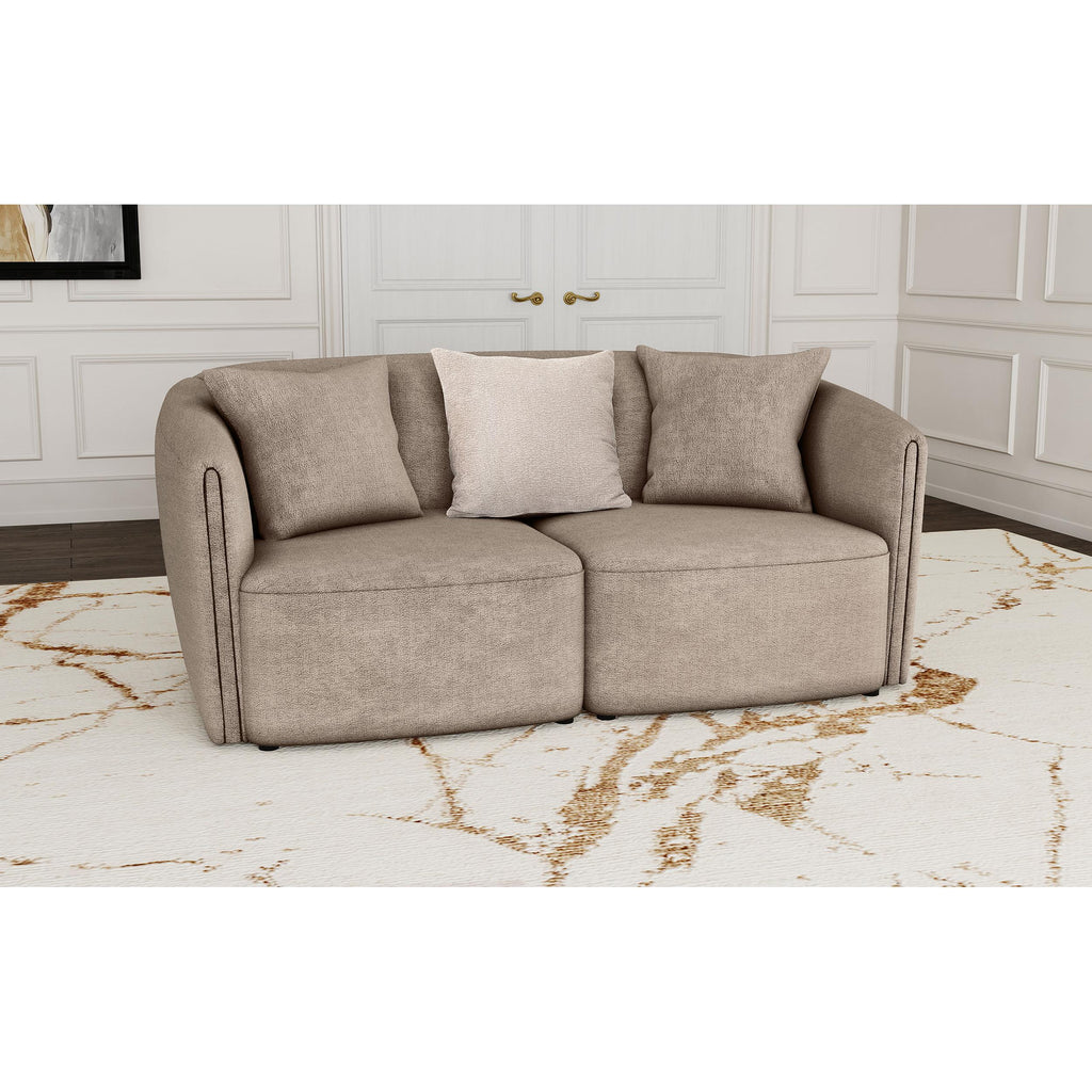 • Neutral latte upholstery adds understated allure to a modern loveseat with plush foam cushions