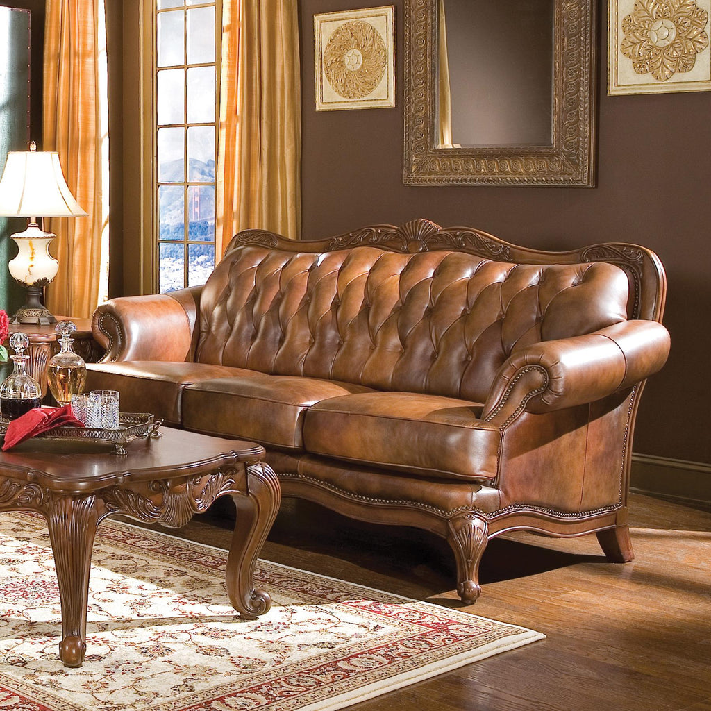 Coaster Furniture Victoria 500682 Full Leather Upholstered Rolled Arm Loveseat - Brown