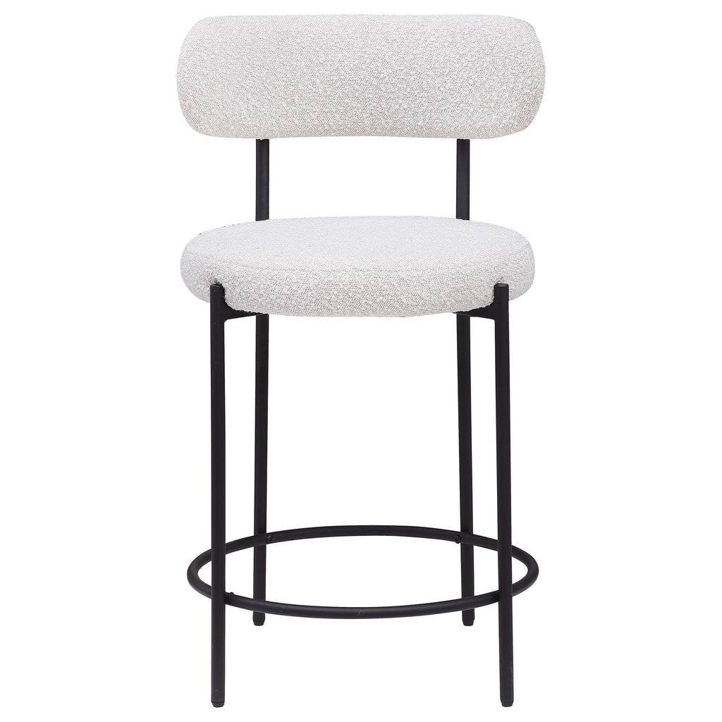 • A modern silhouette and foam cushions blend of form and function for this set of two counter stools