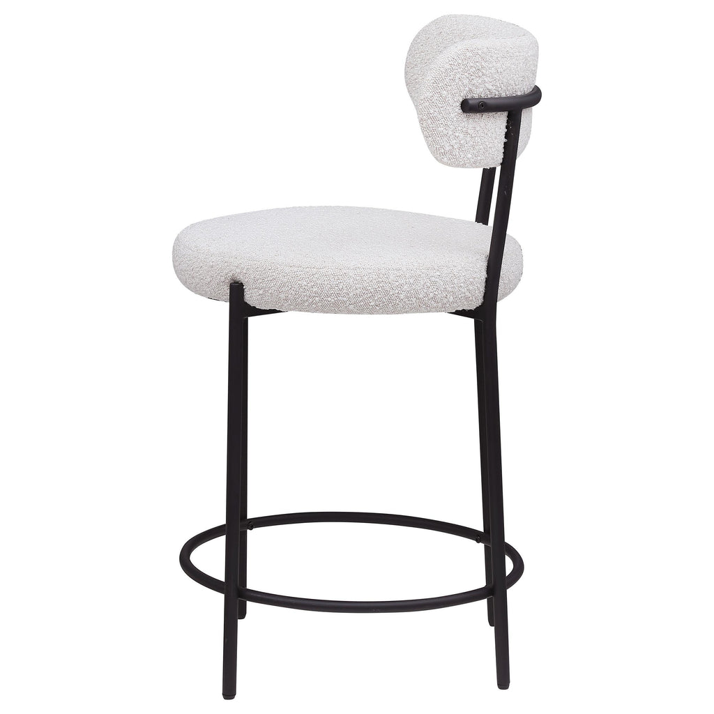 • Boucle upholstery is lightly textured for a fresh look and on-trend appeal