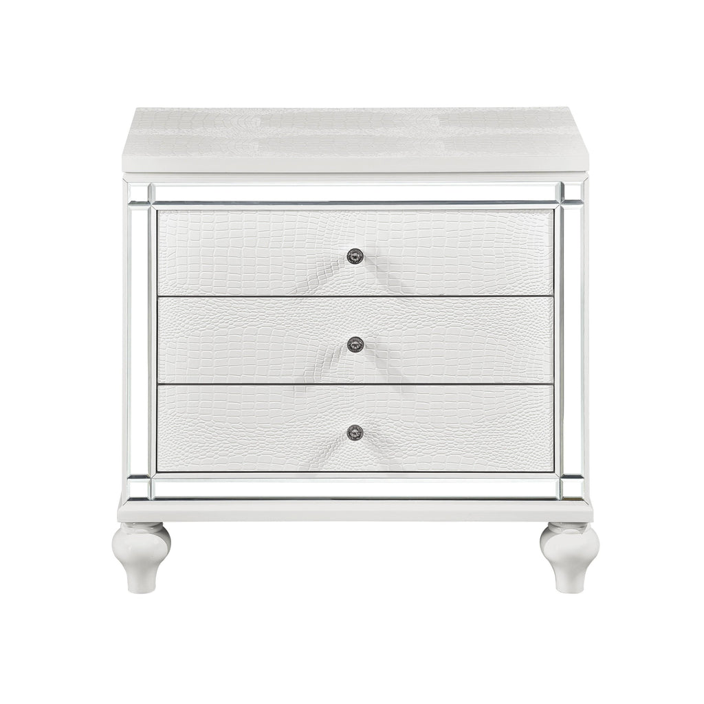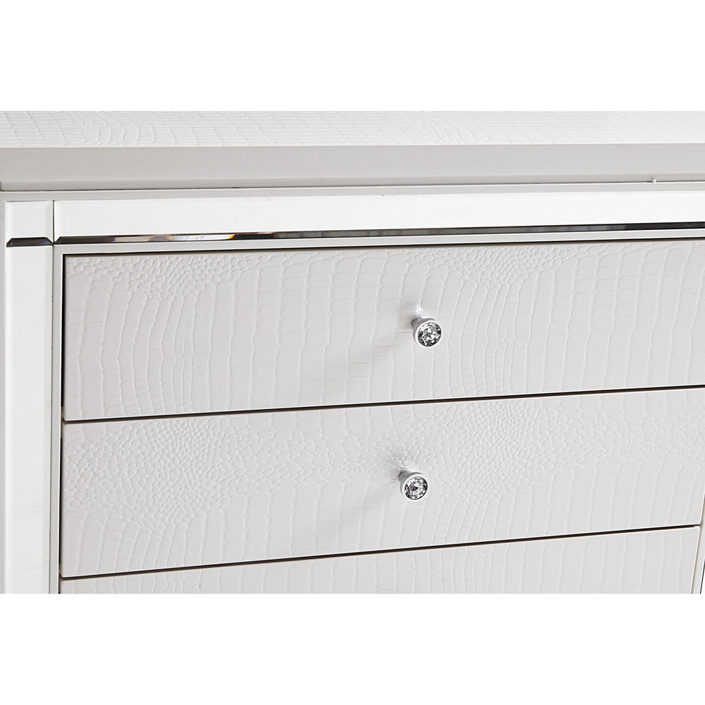 • Faux alligator embossed, textural drawer fronts with beveled mirror trim