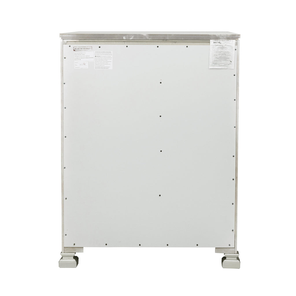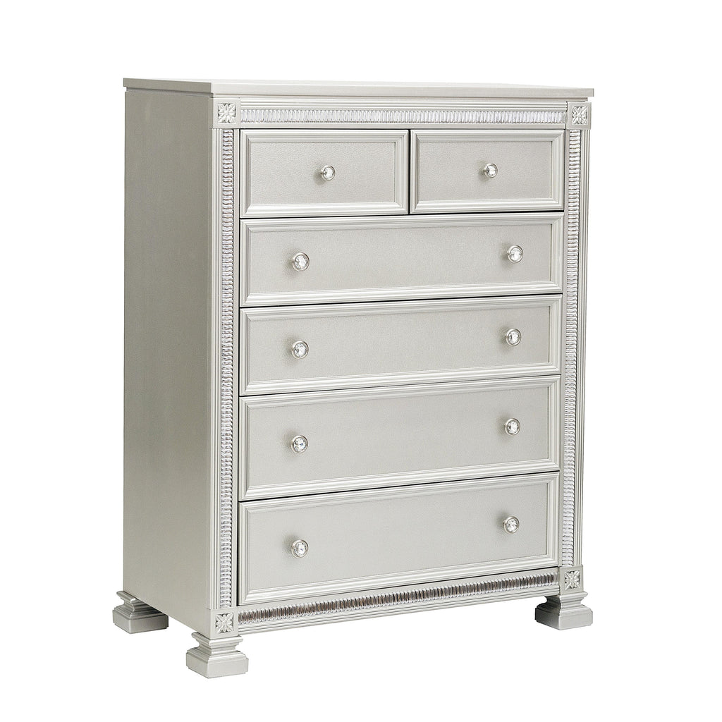 • Embossed, textural drawer front with acrylic crystals trim