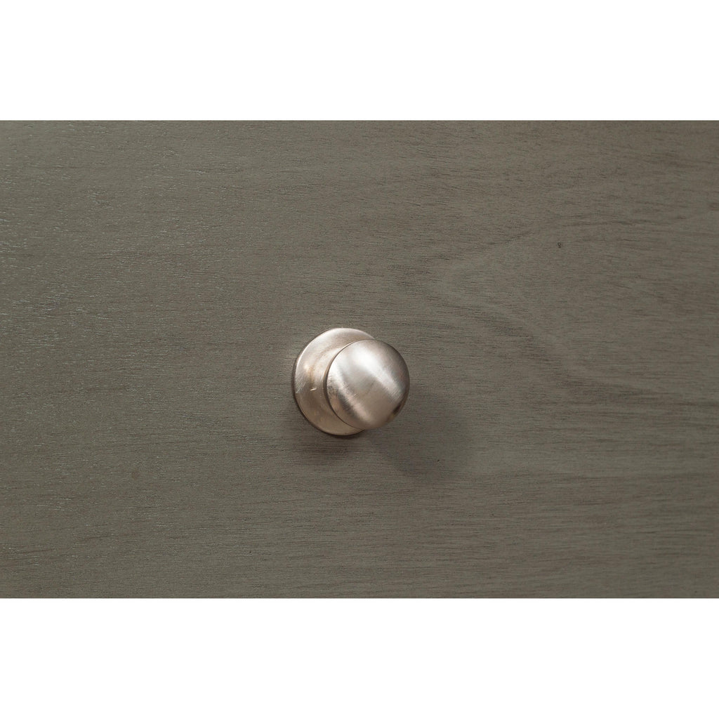 • Satin nickel tone knobs