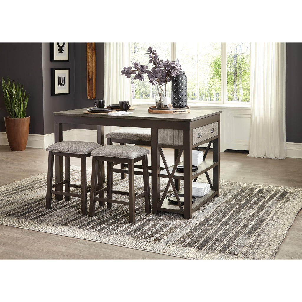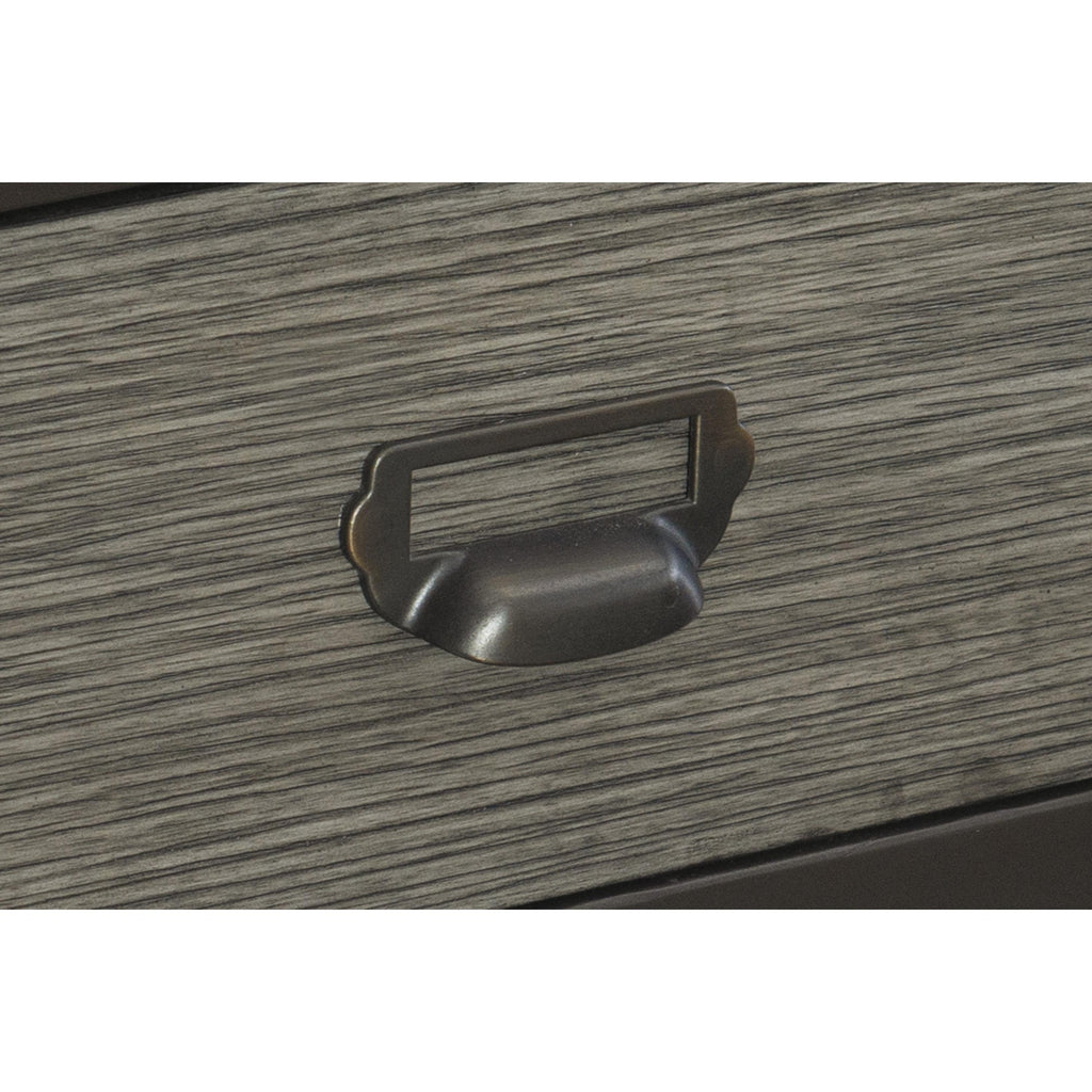 • 2-tone finish: gray wood finish and black metal finish