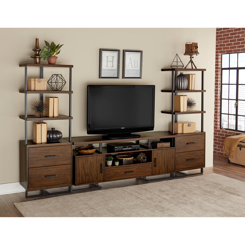 • One central shelve over the drawer and three top shelves for electronic apparels
