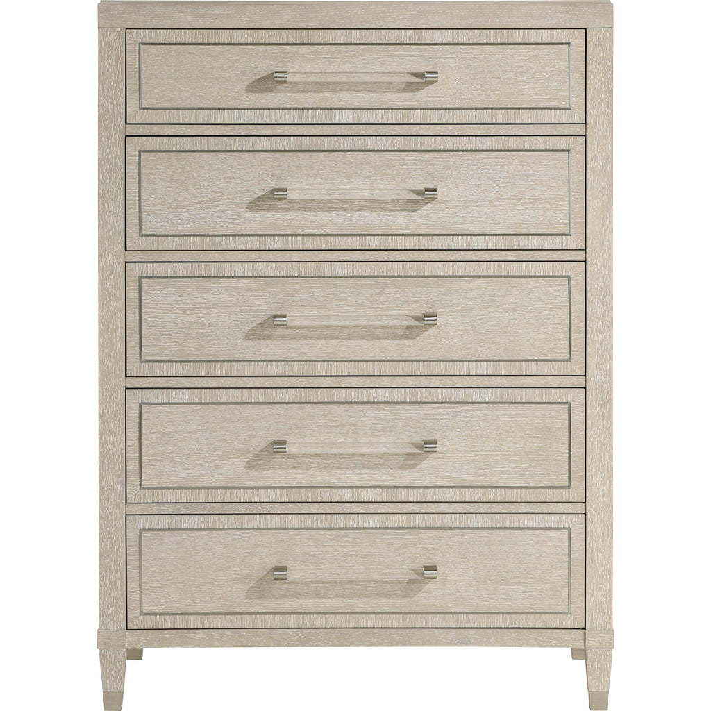 • Nickel-tone bar pull with clear acrylic