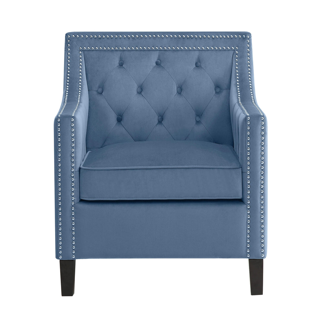 • Button tufted inside arms
