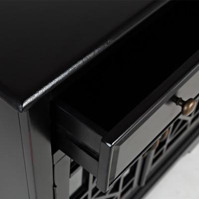 Casual; Rugged looking hardware; Antique black; Drawer Dimensions: 26"W x 12"D x 4"H; Fixed Internal Shelf: 26.5W" x 12.5" D x 8.75"H